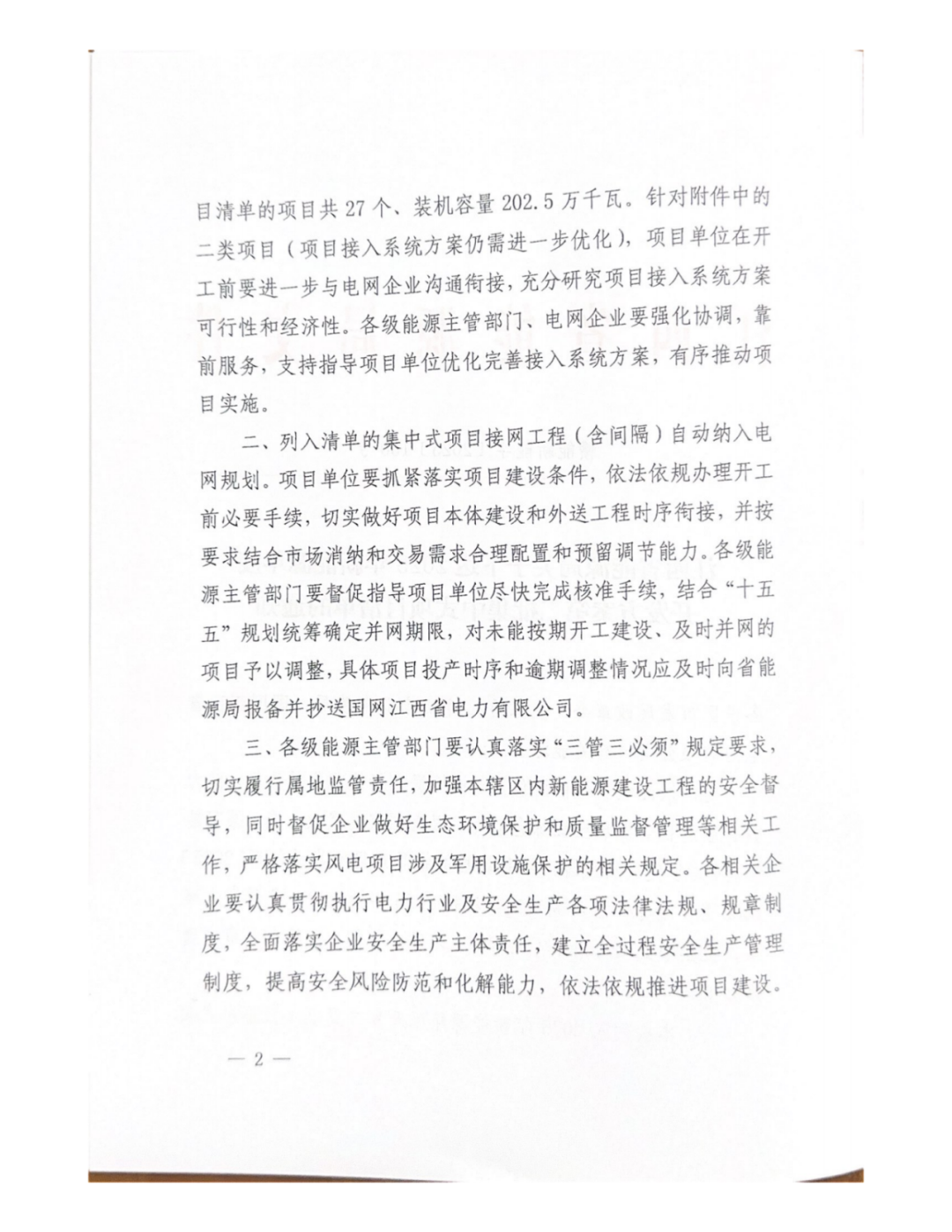 文件指出,例如清单的集中式项目接网工程(含间隔)自动纳入电网规划,项目单位要抓紧落实项目建设条件,依法办理开工手续,要结合市场消纳和交易需求合理配置和预留调节能力。