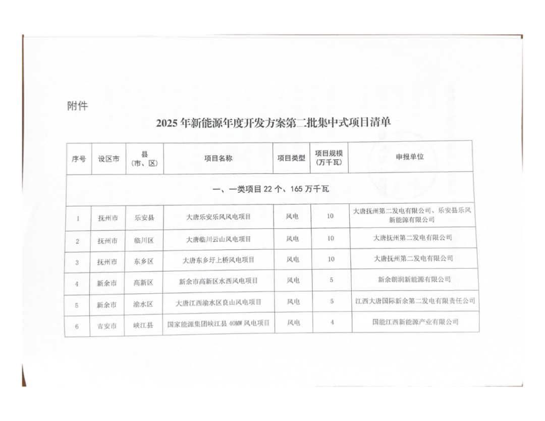 近日,江西省能源局下发2025年新能源年度开发方案第二批集中式项目清单,规模总计2.02GW,全部为风电项目。